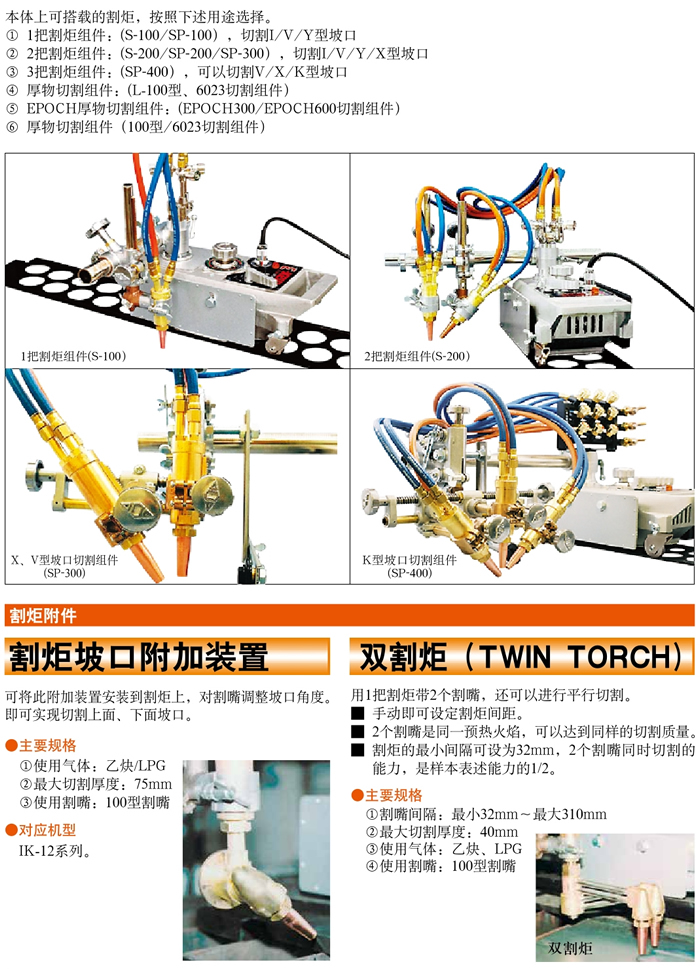 割炬組合的選擇/割炬坡口附加裝置·雙割炬(TWIN TORCH)