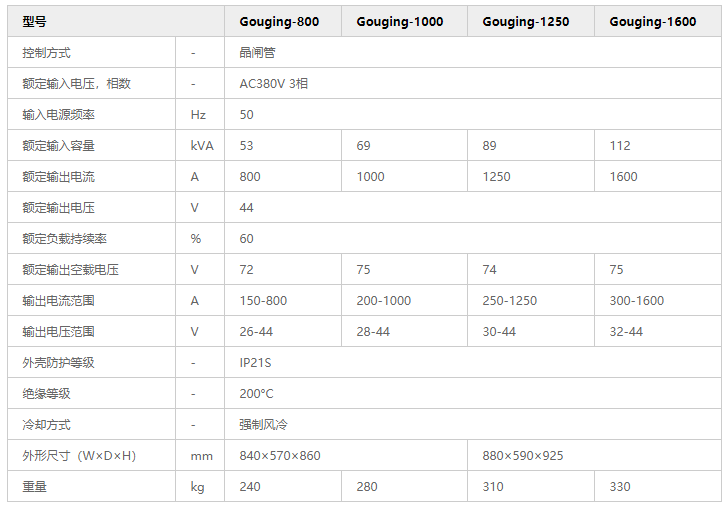 ? 獨(dú)特的控制回路使氣刨電流非常的穩(wěn)定,使氣刨操作更易操作。